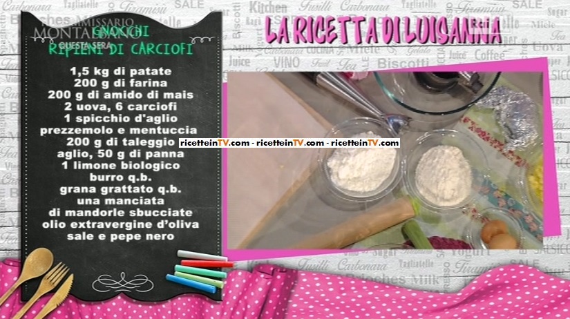 Chiude il menu odierno la portata proposta da Luisanna Messeri, particolarmente raggiante per via del ritorno in Patria della figlioletta. Lunedì gnocchi, con Luisanna, che li prepara, proponendone una versione inedita. Ecco la ricetta degli gnocchi ripieni di carciofi.