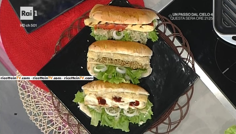 - 600 g petto di pollo, 200 g semolino cotto, 6 uova, 150 g pecorino fresco, 1 cucchiaino di paprika dolce e 1 di paprika affumicata, 3 cucchiai di olio evo, 10 panini lunghi da hot dog, maionese, ketchup, senape in grani, salsa barbecue, 1 barattolo di crauti, sale e pepe