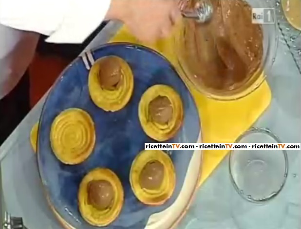 “La prova del cuoco – I dolci”: crostatine alle pere e banane con cremoso al cioccolato fondente di Sal De Riso