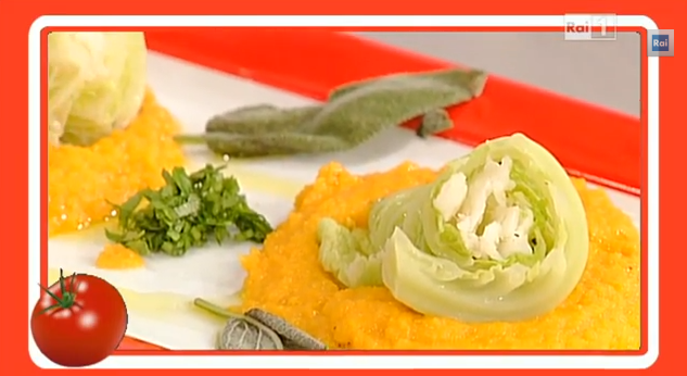 Nella puntata odierna de La prova del cuoco, nel segmento finale, dedicato alla gara tra cuochi, è stata proposta la ricetta degli involtini di verza e baccalà su crema di zucca.