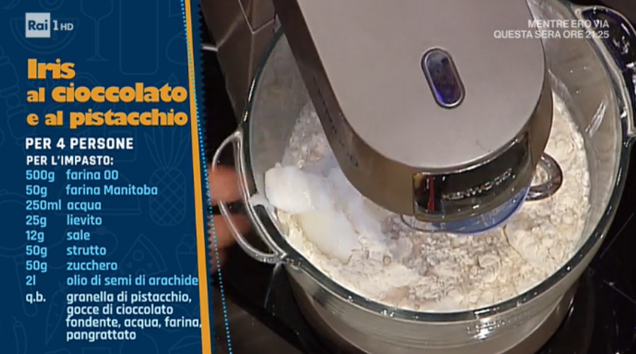 - 500 g farina 00, 50 g farina manitoba, 250 ml acqua, 25 g lievito, 12 g sale, 50 g strutto, 50 g zucchero, 2 l olio per friggere, acqua, farina, pangrattato
