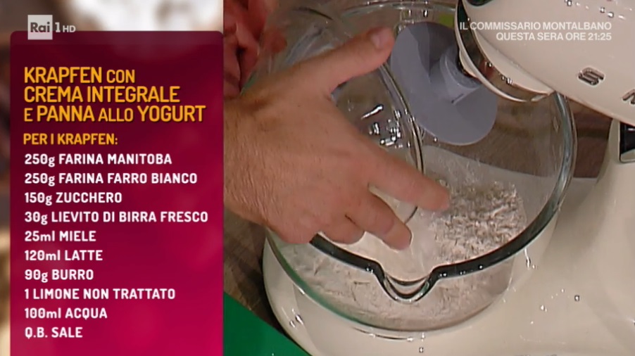 - Impasto: 250 g farina manitoba, 250 g farina di farro, 150 g zucchero, 30 g lievito di birra fresco, 25 ml miele, 120 ml latte, 90 g burro, 1 limone, 100 ml acqua, sale