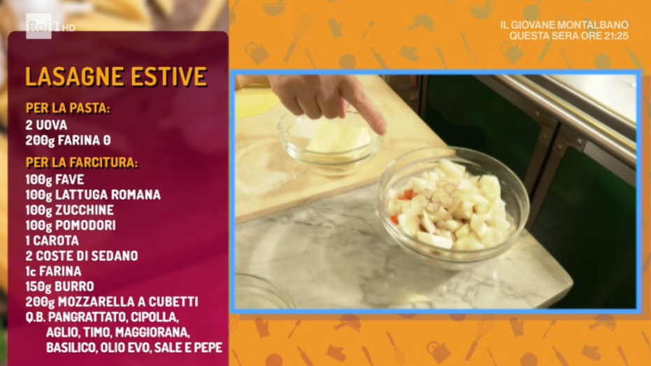 Un piatto estivo firmato Alessandra Spisni, che in collegamento da Bologna, stende la sua sfoglia/lenzuolo per preparare delle lasagne estive, ricche di verdure di stagione, legumi e non solo… vedere per credere!