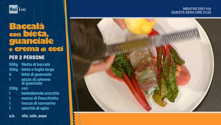 • Mercoledì – Un duello epocale, in apertura, tra Alessandra Spisni e Sal De Riso. Successivamente, la cucina romana di Marco Rufini. A seguire, la cucina degli avanzi di Luisanna Messeri ed il piatto gourmet di Ivano Ricchebono.
