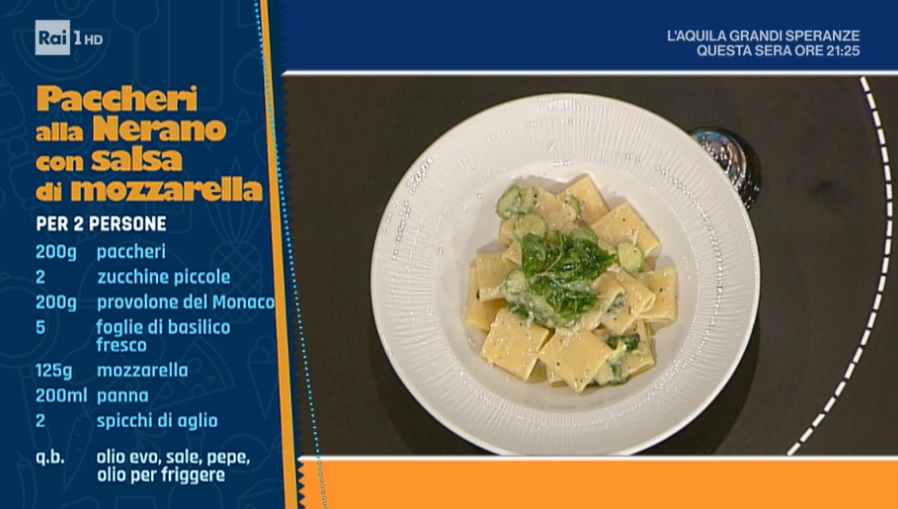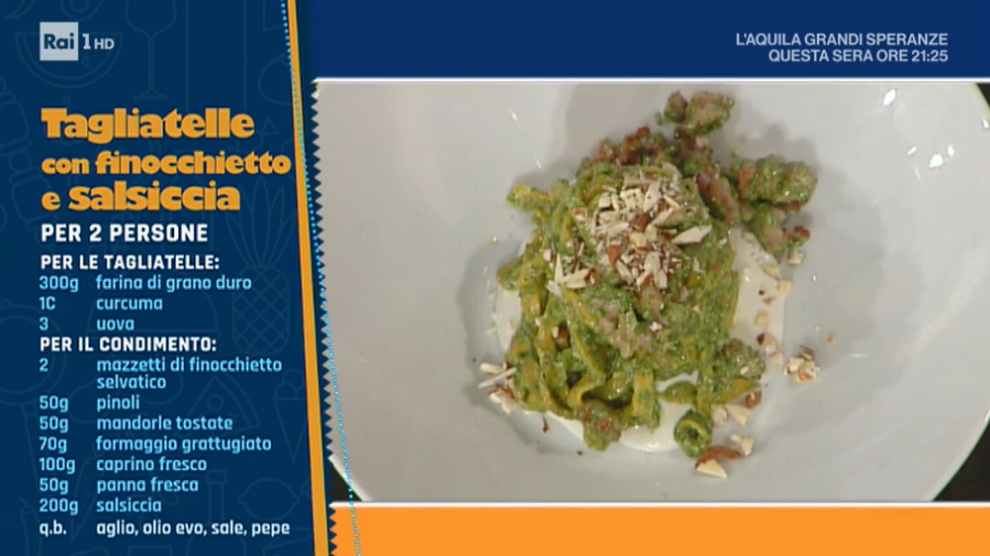 - Lunedì – Un duello speciale, in cui l’imbattuta regina delle sfogline Alessandra Spisni sfiderà la conduttrice televisiva Roberta Capua sulle torte di Pasqua, per poi deliziare il pubblico con uno dei suoi cavalli di battaglia. A seguire, lo chef stellato Marco Bottega preparerà uno dei suoi irripetibili “piatti d’autore” e la coppia di chef Marco Rufini e Fabio Campoli si cimenterà in una ricetta a quattro mani, unica ed irripetibile.