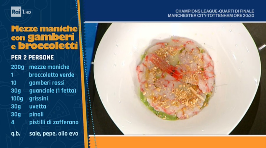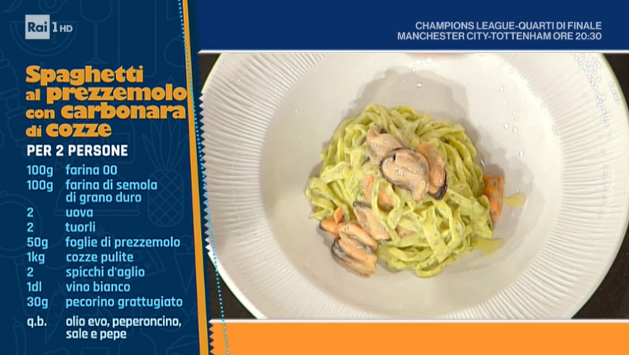 - Lunedì – Un duello speciale, in cui l’imbattuta regina delle sfogline Alessandra Spisni sfiderà la conduttrice televisiva Roberta Capua sulle torte di Pasqua, per poi deliziare il pubblico con uno dei suoi cavalli di battaglia. A seguire, lo chef stellato Marco Bottega preparerà uno dei suoi irripetibili “piatti d’autore” e la coppia di chef Marco Rufini e Fabio Campoli si cimenterà in una ricetta a quattro mani, unica ed irripetibile.