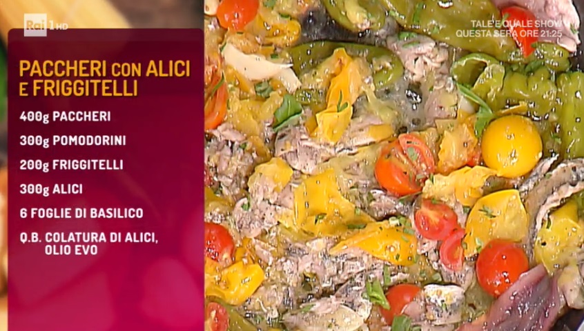 - Giovedì – Pasquale Rinaldo e Daniele Reponi apriranno un’altra puntata con una sfida a colpi di bruschette. Per le due prove individuali, Luisanna Messeri e Natalia Cattelani, irresistibile duo di amiche, cucineranno rispettivamente una terrina di pollo e tacchino con maionese sprint e verdure, e una cheesecake con i fichi.