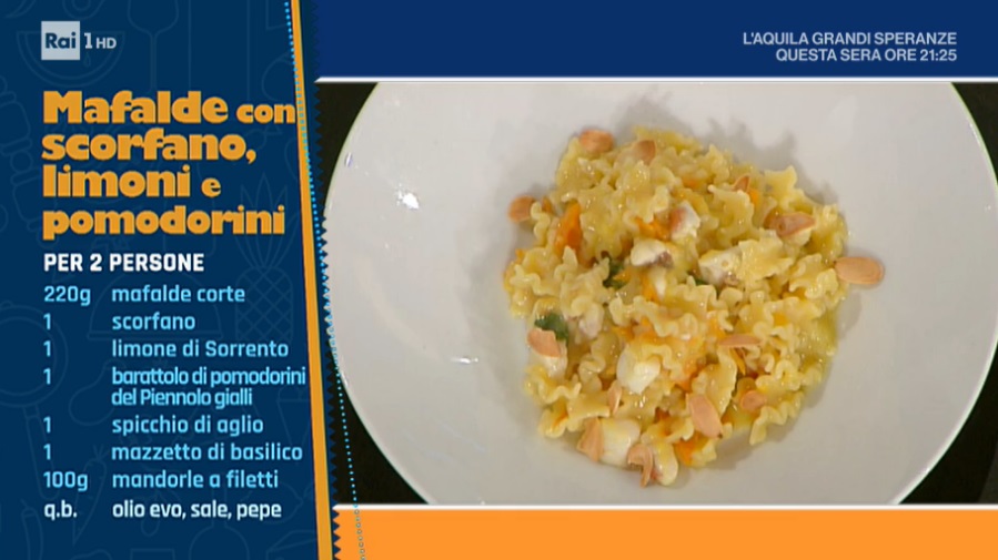 - Venerdì – Dopo l’emozionante “duello delle città” tra Daniele Reponi e Diego Bongiovanni, dedicato alla regina della tavola “la bruschetta”, Elisa Isoardi avrà 5 minuti per preparare una ricetta dello chef romano Marco Rufini, alle prese con un piatto di pasta. Nella prima manche di gara, gli chef Paolo Zoppolatti e Riccardo Facchini. Come ogni venerdì, appuntamento con il maestro della pasticceria Salvatore De Riso, che proporrà una delle sue creazioni più originali. Seguirà poi una ricetta a portata di famiglia della cuoca modenese Natalia Cattelani.