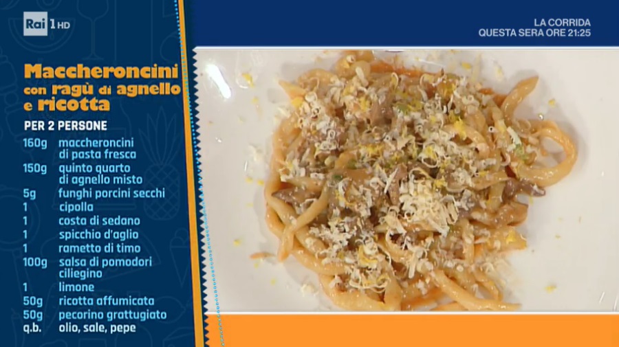 • Venerdì – Dopo l’emozionante “duello delle città” tra Daniele Reponi e Diego Bongiovanni, dedicato alla regina della tavola “la bruschetta”, Elisa Isoardi avrà 5 minuti per preparare una ricetta dello chef romano Marco Rufini, alle prese con un piatto di pasta. Come ogni venerdì, appuntamento con il maestro della pasticceria Salvatore De Riso, che proporrà una delle sue creazioni più originali. Seguirà poi una ricetta di mare di Gianfranco Pascucci.
