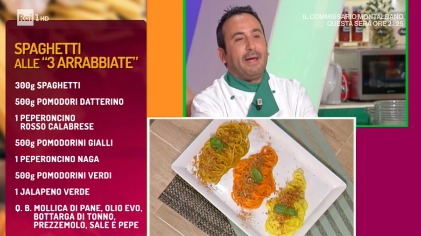 - Lunedì – La “Pasta all’arrabbiata” sarà il tema della Prima Manche, per la quale si sfideranno Natale Giunta e Diego Bongiovanni. Si prosegue con le Prove Individuali, con Andrea Ribaldone, al suo ritorno, e Alessandra Spisni, che cucinerà la sua famosa e golosissima torta di mele. Gara Finale tra Juri Risso e Cristian Bertol.