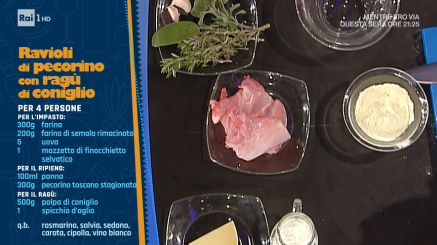 - Mercoledì – “Duello delle città” tra Alessandra Spisni e Natale Giunta. Poi, la ricetta a 4 mani di Marco Bottega e sua mamma; infine, le uova alla Rossini di Luisanna Messeri.