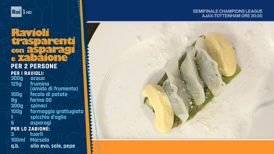 - Lunedì – “Duello delle città” con “la sfoglina delle sfogline” Alessandra Spisni e lo chef “bistellato” Marco Sacco sui cannelloni. Spazio, poi, alla ricetta di Luisanna Messeri, mentre l’ospite di oggi, Simona Izzo, si cimenterà in cucina con la conduttrice Elisa Isoardi. Altro confronto avvincente tra la chef mantovana Clara Zani e lo chef bolognese Riccardo Facchini sulle ricette a base di verdure.