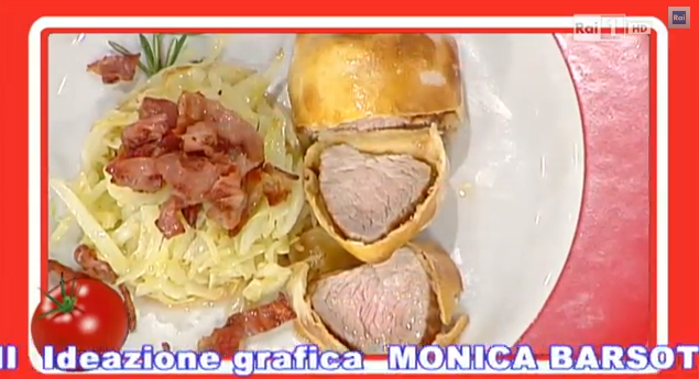 Nella puntata odierna de La prova del cuoco, nel segmento finale, dedicato alla gara tra cuochi, è stata proposta la ricetta del maiale in crosta di pane con cavolo cappuccio e prosciutto croccante.