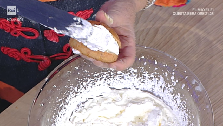 Serviamo tagliando a metà e con una generosa farcitura di panna montata.