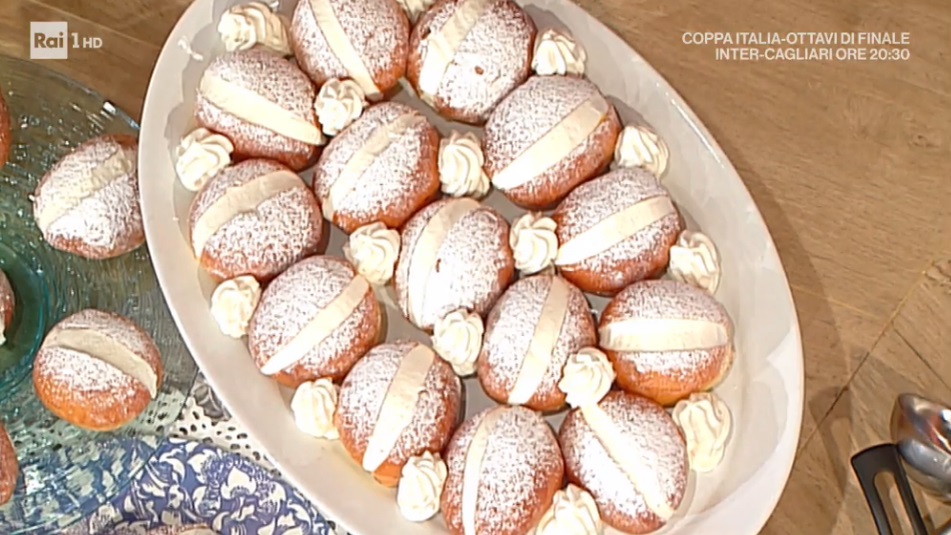 Quando sono ormai freddi, li tagliamo a metà, senza però separare completamente le due metà della brioche. Li farciamo, quindi, con un primo strato di crema pasticcera e finiamo con la panna montata. Spolveriamo con zucchero a velo.