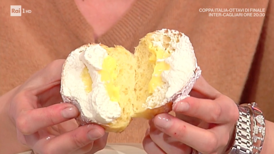 - Impasto: 250 g acqua, 50 g lievito di birra, 35 g miele di acacia, 120 g zucchero, 1 kg farina 00, 300 g uova intere, 120 g tuorli, 220 g burro, 16 g sale, scorza di limone grattugiata, vaniglia