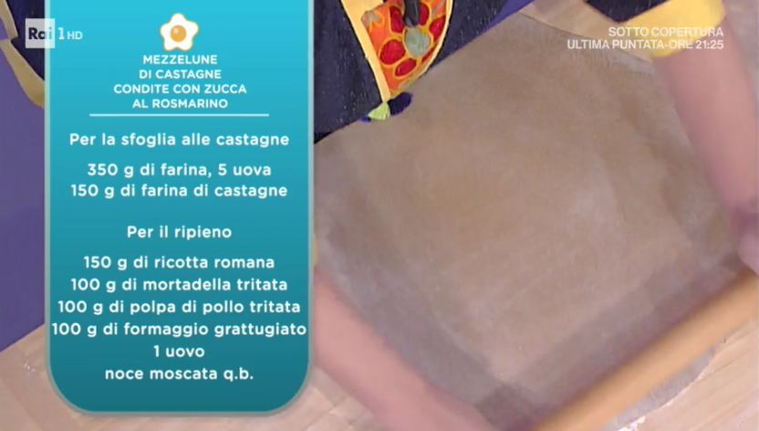 - Per la sfoglia: 350 g farina, 5 uova, 150 g farina di castagne