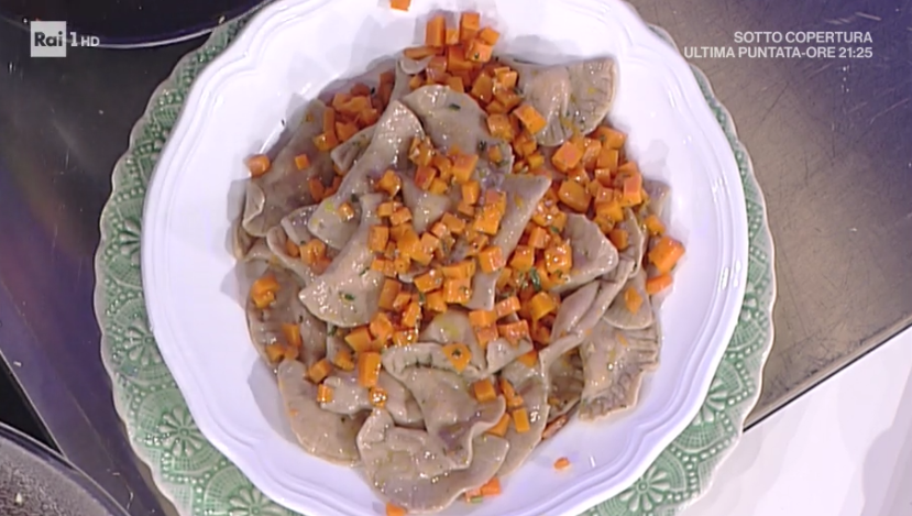 Mettiamo delle noci di ripieno sui dischi di sfoglia. Chiudiamo a mezzaluna, sigillando per bene i bordi. Lessiamo in acqua salata, le scoliamo e le condiamo con la dadolata di zucca ripassata in padella.