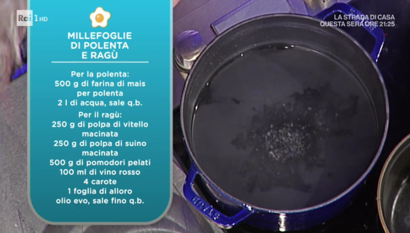 - Polenta: 500 g farina di mais per polenta, 2 l acqua, sale