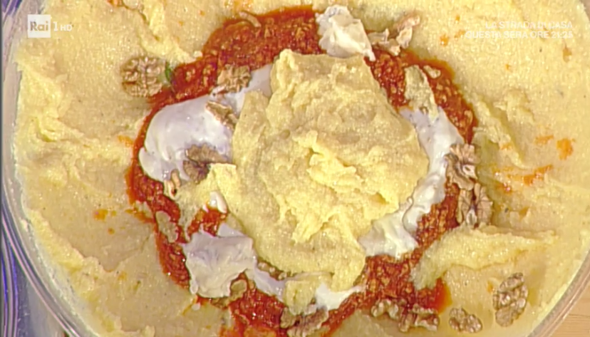 In una ciotola capiente, a mezzasfera, mettiamo qualche cucchiaiata di polenta, in modo da coprire interamente il fondo della ciotola ed i bordi. Versiamo all’interno un paio di mestoli di ragù ed un paio di besciamella. Mettiamo ancora qualche noce sgusciata e dei fiocchi di gorgonzola. Copriamo con altra polenta, ragù e condimenti vari, ancora polenta e continuiamo così fino a riempire la ciotola fino all’orlo. Lasciamo ben raffreddare e sformiamo, capovolgendola.