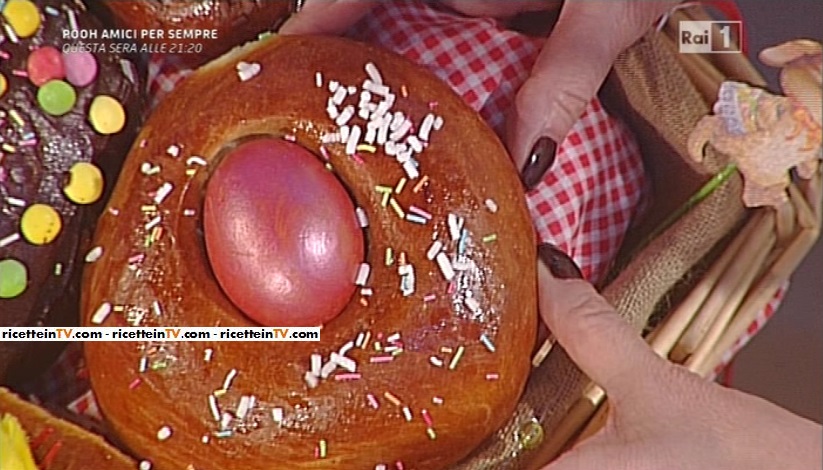 Scaldiamo leggermente l’olio con la scorsa degli agrumi e la cannella. A parte, scaldiamo il latte con la sambuca; uniamo il lievito di birra e mescoliamo fino a scioglierlo completamente. Togliamo dal fuoco (dev’essere tiepido, non caldo); a parte, mescoliamo con una frusta manuale 2 uova con lo zucchero. Uniamo l’olio aromatizzato e filtrato ed il latte; mescoliamo, quindi uniamo anche la farina ed impastiamo per bene, fino ad ottenere un composto morbido ed omogeneo. Lasciamo lievitare, coperto, fino al raddoppio del volume (anche una notte intera); formiamo 2 palline di 200 g circa; disponiamo su una placca coperta di carta forno e spennelliamo con una miscela di uovo e panna (o latte). Mettiamo al centro di ciascuna pallina di impasto un uovo sodo, lasciamo lievitare nuovamente fino al raddoppio e cuociamo 170° per 25 minuti circa. Fuori dal forno, spennelliamo con lo sciroppo di acqua e zucchero e spolveriamo con granella di zucchero e confettini di cioccolato.