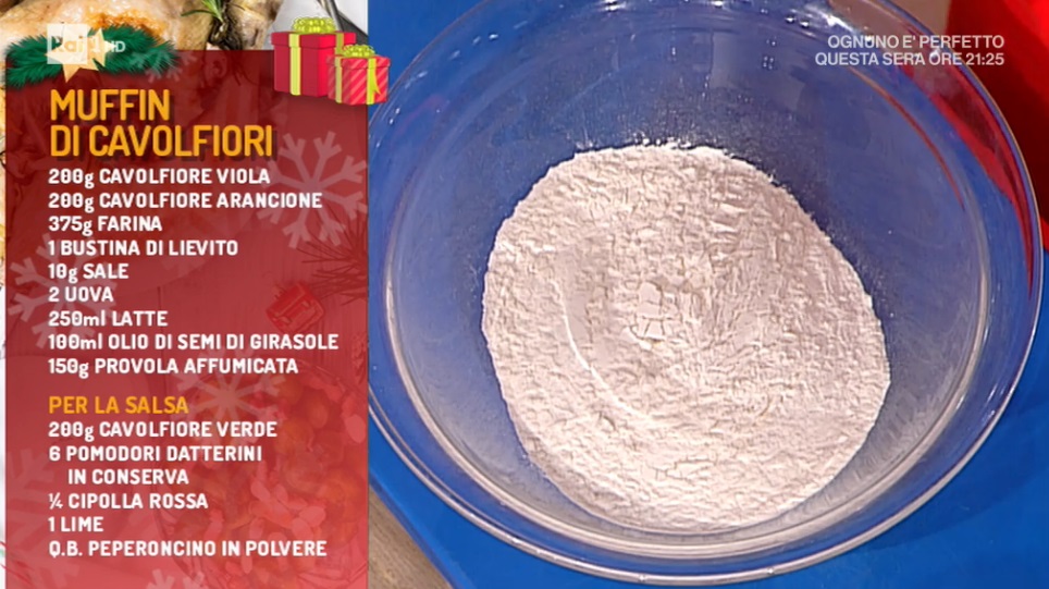 Prepariamo la base per i muffin: in una ciotola mescoliamo la farina con il sale ed il lievito istantaneo per salati. In un’altra ciotola, sbattiamo le uova intere con l’olio di semi ed il latte fresco. Uniamo la parte liquida a quella in polvere, mescolando con una frusta manuale fino ad ottenere una pastella senza grumi. Uniamo la provola affumicata a cubetti e parte dei cavolfiori sbollentati a pezzetti piccoli. Mescoliamo e riempiamo per 2/3 i pirottini da muffin. Adagiamo sopra le cime di cavolfiore sbollentate rimaste e cuociamo in forno caldo e statico a 180° per 40 minuti.