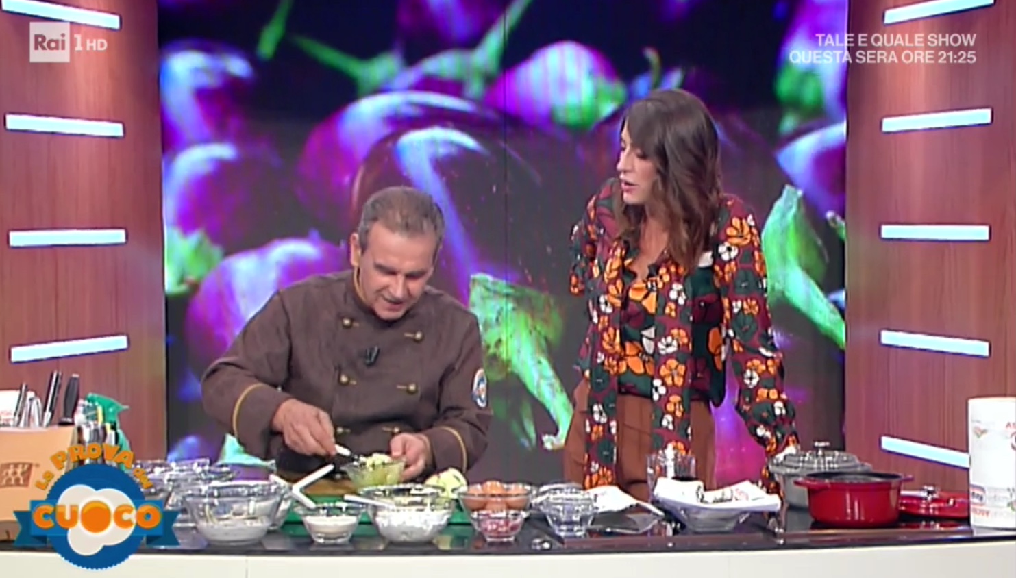 La puntata si apre col tema del giorno, la melanzana. Prima di parlarne insieme a nutrizionista e dietologo, Elisa raggiunge Fabio Tacchella, ennesima new entry del cooking show di Rai1. Insieme a lui prepariamo il nido di melanzane con uova e pancetta.