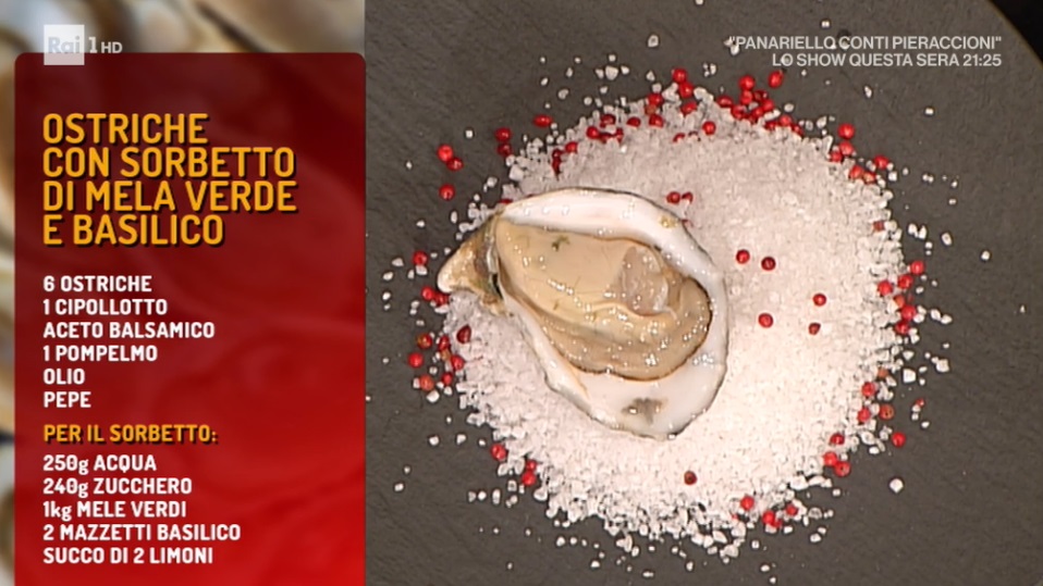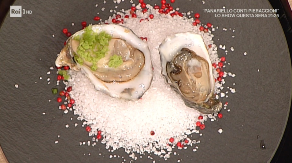 Serviamo le ostriche aperte con con il cipollotto, oppure il pompelmo, oppure il sorbetto appena raschiato.