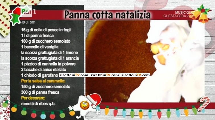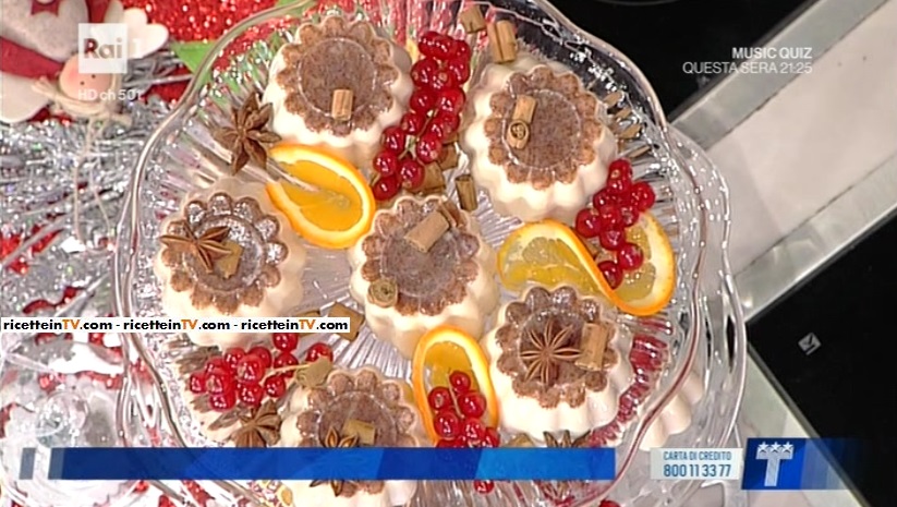 Dopo l’ultima ‘giocata‘ alla Lotteria Italia, chiude il menu settimanale il dessert di Ambra Romani. Ad assistere Ambra, quest’oggi, c’è anche Matilde, testimonial Telethon. Insieme, preparano la panna cotta natalizia.