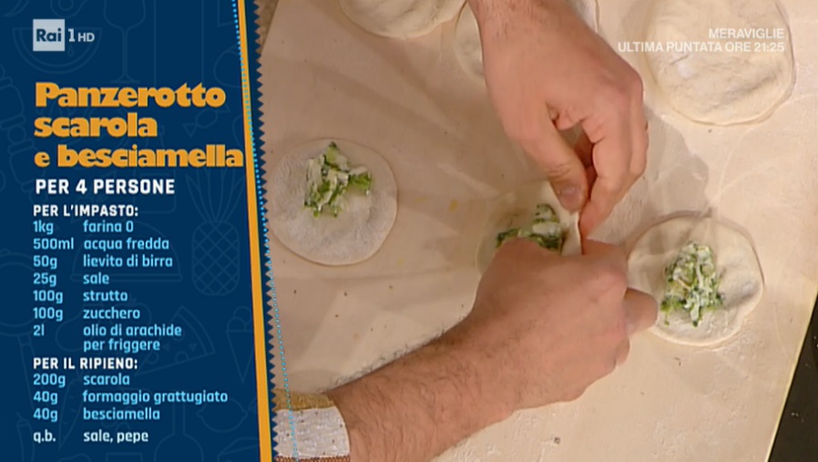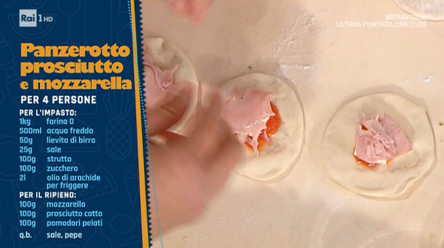 In apertura di puntata, il duello delle città ha visto confrontarsi il palermitano Natale Giunta e Renato Bosco, sul tema dei panzerotti, sfiziosi street food di pasta lievitata, farciti con ogni ben di Dio. Ecco la versione di Natale Giunta.
