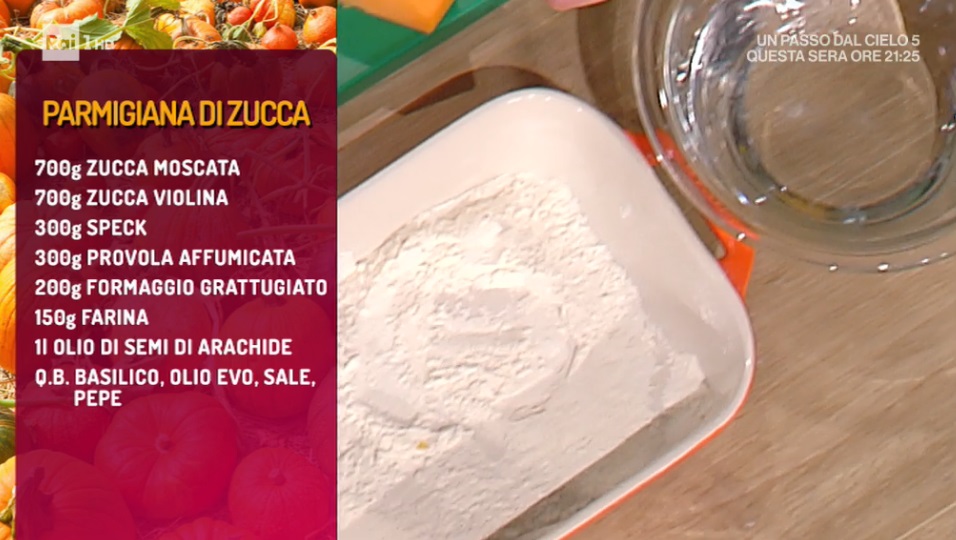 parmigiana di zucca di Pasquale RinaldoCelebriamo Halloween con due ricette simpatiche e golose all’interno del duello iniziale tra Diego Bongiovanni e Pasquale Rinaldo. Il secondo prepara una versione inedita della celebre parmigiana, utilizzando la zucca al posto della melanzana. Ecco la parmigiana di zucca.