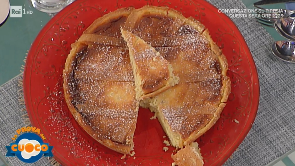 Versiamo la farcitura all’interno del guscio di frolla. Disponiamo sopra le strisce di frolla ed inforniamo a 170° per 1 ora circa.
