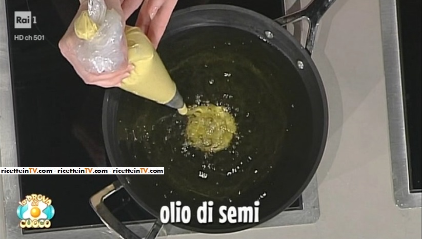 Scaldiamo l’olio. Quando ha raggiunto la temperatura ottimale (170°), formiamo sullo stesso delle spirali di composto di patate. Quando la spirale viene a galla, la giriamo e facciamo dorare. Lasciamo sgocciolare l’olio in eccesso su carta assorbente e serviamo.