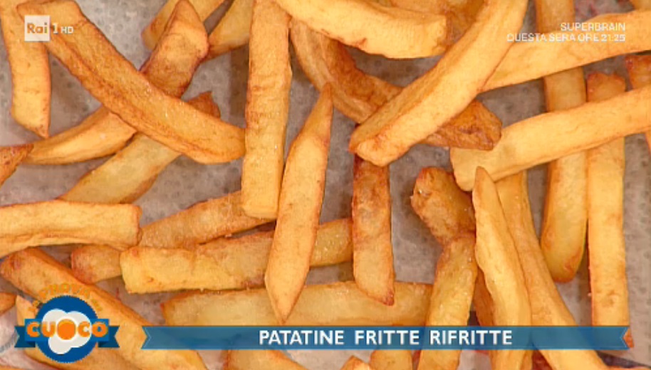 A questo punto, possiamo rifriggere le patate già scottate in olio ben caldo e profondo (meglio la casseruola che la padella), intorno a 170-180°, fino a doratura. Scoliamo e facciamo asciugare su carta assorbente. Saliamo prima di servire.