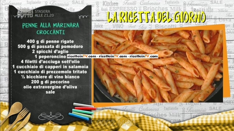- 400 g penne rigate, 500 g passata di pomodoro, 2 spicchi d’aglio, 1 peperoncino, 4 filetti d’acciuga sott’olio, 1 cucchiaio di capperi in salamoia, 1 cucchiaio di prezzemolo tritato, 1/2 bicchiere di vino bianco, 200 g pecorino, olio evo, sale