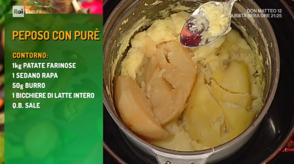 - Contorno: 1 Kg patate farinose, 1 sedano rapa, 50 g burro, 1 bicchiere di latte intero, sale