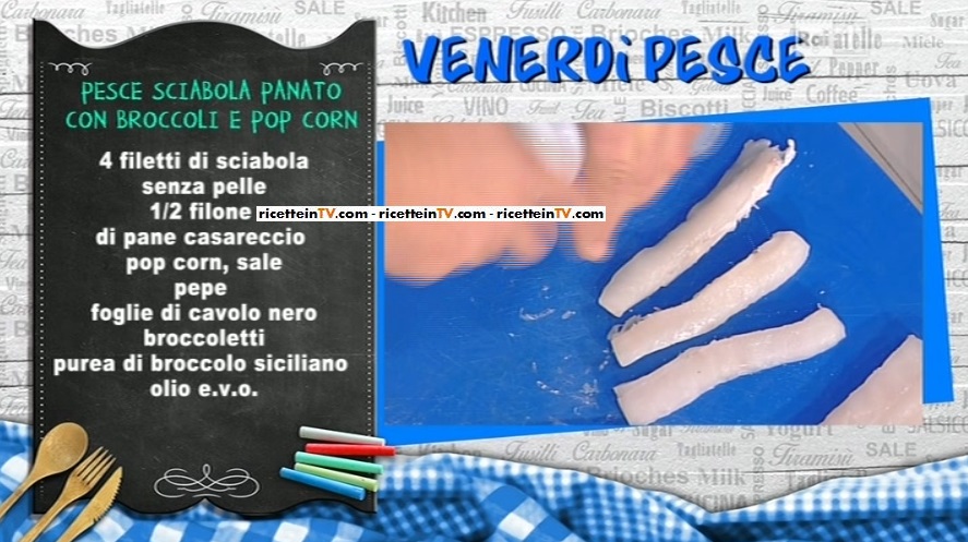 Venerdì pesce, con Gianfranco Pascucci, che ha assistito, inebriato, alla preparazione dei bomboloni di Annina… lo chef stellato cucina un piatto con il pesce sciabola. Ecco la ricetta del pesce sciabola panato con broccoli e pop corn.