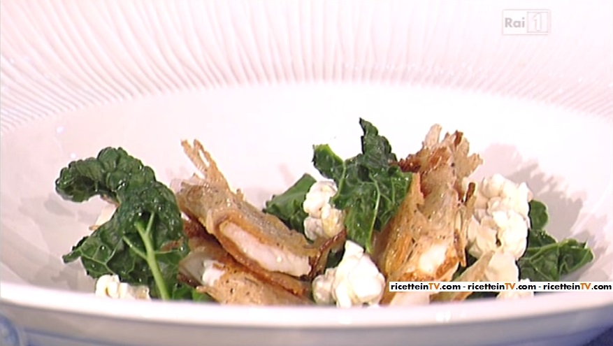 - 4 filetti di sciabola senza pelle, 1/2 filone di pane casereccio, pop corn, sale, pepe, foglie di cavolo nero, broccoletti, purea di broccolo siciliano, olio evo