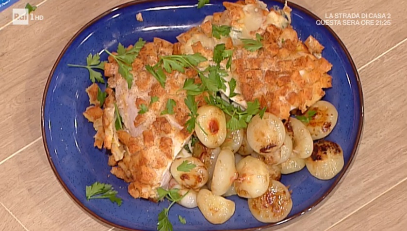 - Contorno: 500 g cipolle borrettane, 3 cc miele, 3 cc salsa di soia, 3 cc olio evo, prezzemolo, sale