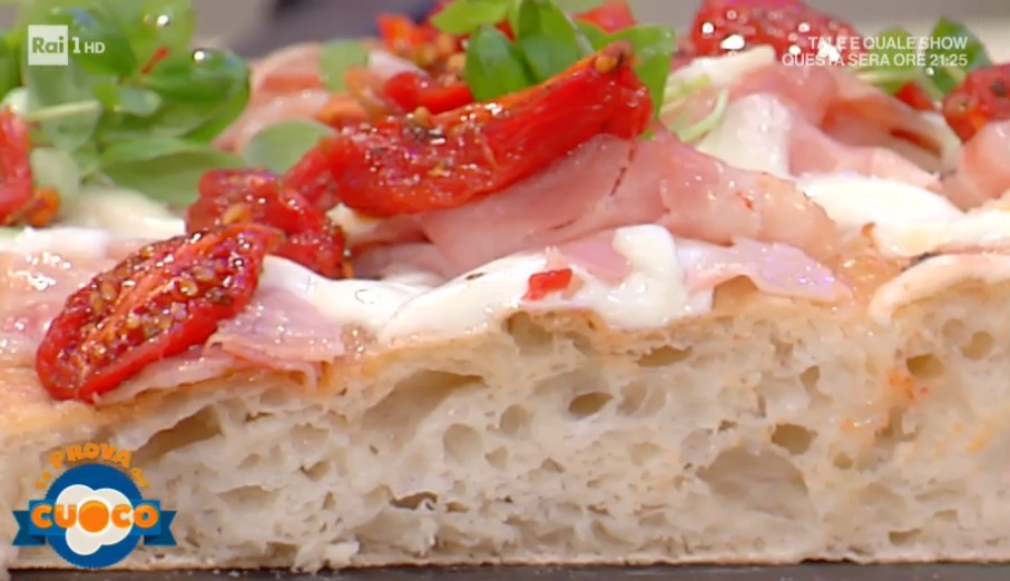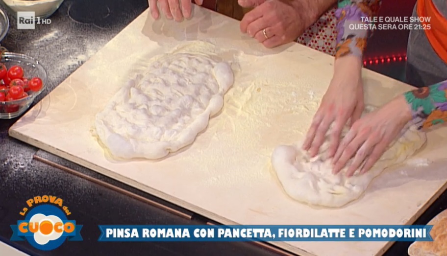 Infine, è il turno di Renato Bosco, maestro della pizza gourmet. Oggi, il pizzaiolo ci spiega la differenza tra focaccia e pinsa, proponendo quest’ultima. Ecco la pinsa romana.