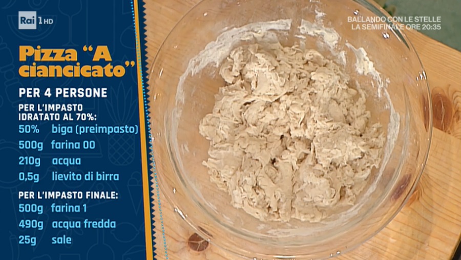 - Preimpasto: 500 g farina 00, 210 g acqua, 0,5 g lievito di birra