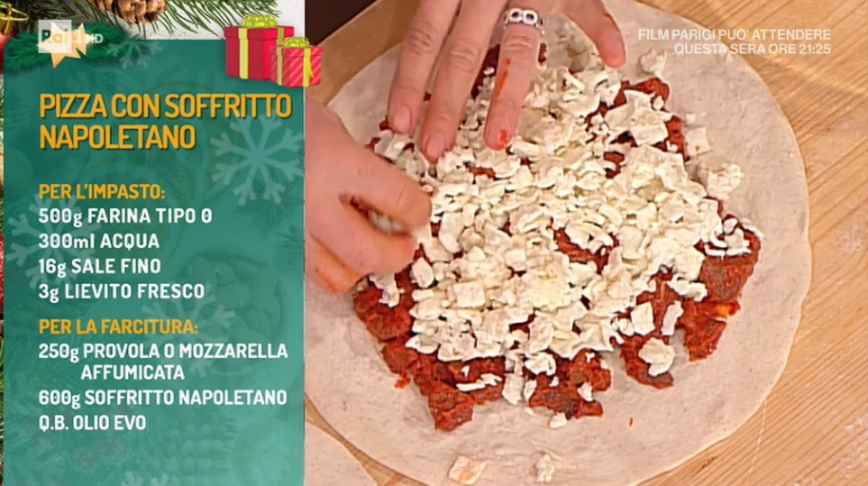 - Farcitura: 250 g provola o mozzarella affumicata, 600 g soffritto napoletano, olio evo