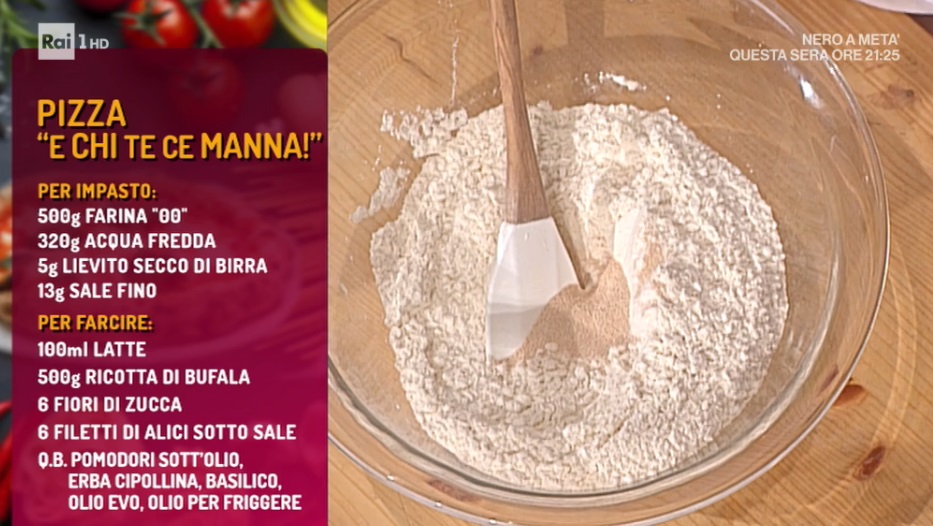 - Impasto: 500 g farina 00, 320 g acqua fredda, 5 g lievito di birra secco, 13 g sale fino