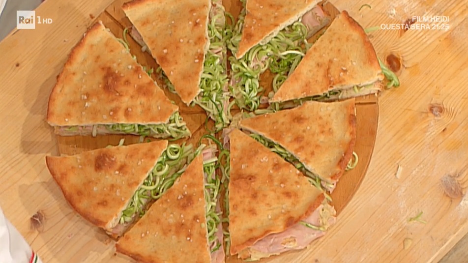 - Farcitura: 500 g puntarelle, 500 g mortadella, 250 g ceci lessati, aglio, rosmarino, alloro, pepe, olio evo, sale