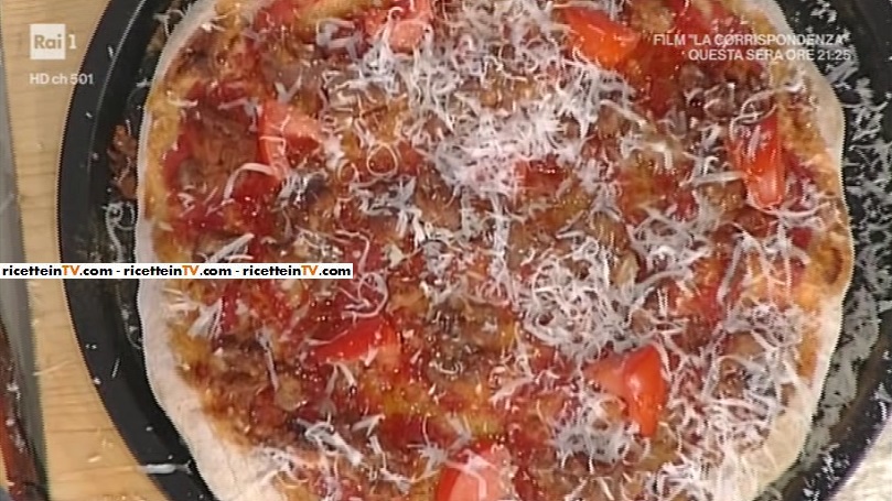 Stendiamo la pizza (per l’impasto, potete rifarvi all’impasto base di Gabriale Bonci), realizzata con farina di grano duro. La posizioniamo su una teglia tonda e copriamo con la passata di pomodoro marinata. Sgraniamo la salsiccia e ne disponiamo dei pezzi sulla pizza. Completiamo con pezzi di pomodoro fresco. Inforniamo, al massimo della temperatura, per 15 minuti, prima nella parte bassa, poi alziamo. Fuori dal forno, completiamo con un filo d’olio a crudo e del pecorino grattugiato.