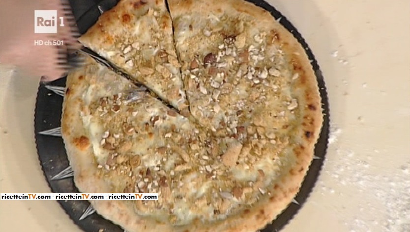 In questo modo, abbiamo ottenuto la base bianca. Completiamo con altro pepe e con dei taralli napoletani sbriciolati grossolanamente. Se vogliamo, arricchiamo con mandorle tostate in granella. La pizza è pronta!