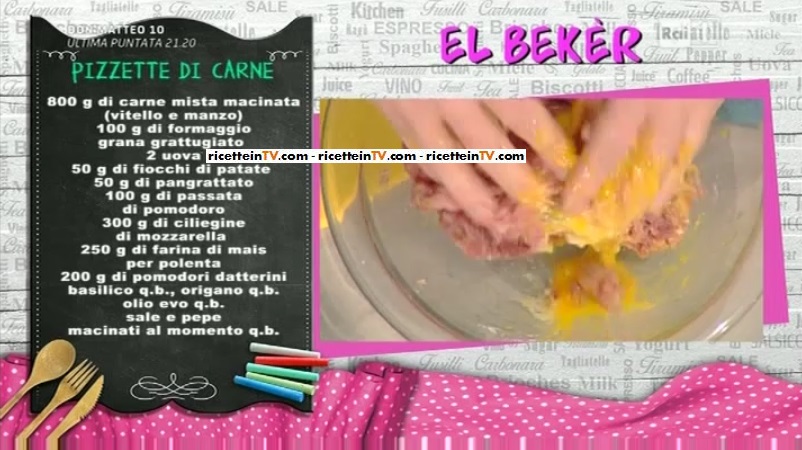 - 800 g di carne mista macinata, 100 g formaggio grattugiato, 2 uova, 50 g fiocchi di patate, 50 g pangrattato, 100 g passata di pomodoro, 300 g ciliegine di mozzarella, 250 g farina di mais, 200 g pomodori datterini, basilico, origano, olio evo, sale e pepe, macinati al momento