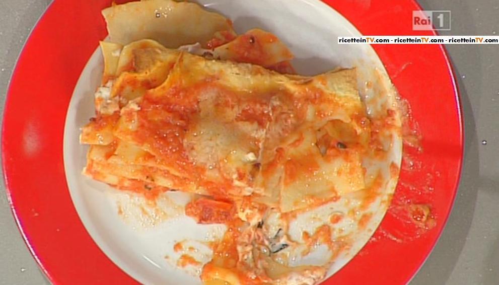 Vi proponiamo una gustosa ricetta realizzata in una delle ultime edizioni de La prova del cuoco. Antonella si congeda fino alla gara lasciando spazio a Claudio che subito raggiunge Anna Moroni, pronta con le sue ricette della domenica. Subito Anna mette Claudio in riga, ordinandogli di lavarsi le mani, togliere la giacca e mettersi il grembiule. Lui non è molto entusiasta, visto che questo vuole dire che dovrà cucinare… La ricetta proposta oggi è plum cake di lasagna estiva. Prepariamo la sfoglia mettendo sulla spianatoia la farina a fontana, ci aggiungiamo tre uova e impastiamo per bene ottenendo la pasta delle lasagne. Tiriamo quindi la sfoglia stendendola col mattarello e ne ricaviamo le lasagne e le lessiamo per pochi secondi in acqua bollente e salata. Prepariamo ora il sugo scaldando in una padella un goccio di olio, aggiungiamo la cipolla a pezzetti, i pomodori a pezzetti e facciamo cuocere, una volta cotto passiamo tutto nel passino e il sugo è pronto. Componiamo ora la lasagna foderando con la carta forno uno stampo da plum cake, mettiamo alla base uno strato di lasagna, sopra uno strato di pomodoro, un po’ di grana, la robiola a pezzetti e ricominciamo con uno strato di lasagna, pomodoro e così via fino a riempire lo stampo. Mettiamo qualche foglia di basilico e inforniamo a 180° per 30 minuti. Buon appetito!
