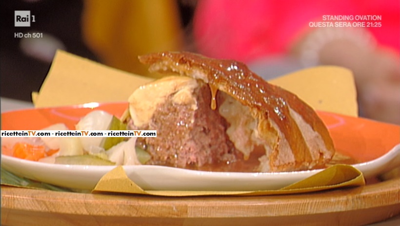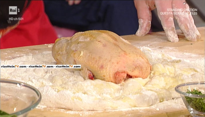 Prepariamo il ripieno, lavorando i macinati con il parmigiano grattugiato, il prezzemolo tritato, sale, pepe ed un uovo. Prendiamo un polletto ruspante disossato e lo farciamo con il ripieno preparato. Lasciamo riposare per 2-3 ore in frigorifero.
