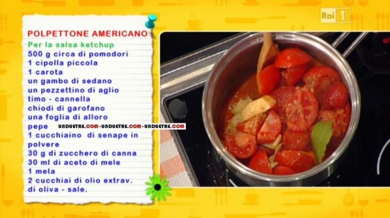 Per il ketchup, tagliamo a pezzettoni i pomodori, a cui uniamo mezza mela, per togliere l’acidità e regalare alla salsa la dolcezza che rende delizioso il ketchup, prepariamo il soffritto con sedano, carota e cipolla, che lasciamo rosolare con un filo d’olio, aggiungiamo i pelati, insaporiamo con timo, cannella, chiodi di garofano, senape in polvere, alloro, zucchero di canna ed aceto, quest’ultimi li aggiungiamo solo dopo qualche minuto di cottura. Frulleremo la salsa e la setacceremo con un colino. Copriremo il polpettone, ancora crudo, con un primo strato di salsa, inforniamo per 40 minuti a 180° e, a metà cottura, copriamo con un secondo strato di salsa, lasciando completare la cottura. Buon appetito!